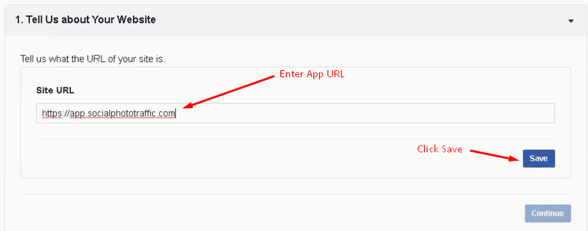 Enter SocialPhotoTraffic App URL https://app.socialphototraffic.com into Site URL and click Save.