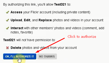 Log into your Flickr account and follow below steps to link Flickr with your SocialPhotoTraffic App.
