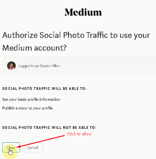 Log into your Medium account and follow below steps to link Medium to your SocialPhotoTraffic App.